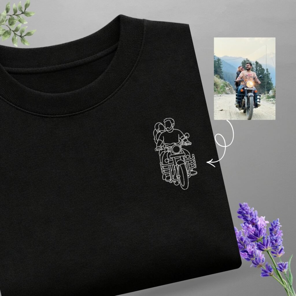 Our process begins with your photo. We carefully convert it into an embroidery-friendly design while preserving expressions, poses, and key details. Once approved, we embroider it onto your chosen garment or fabric using premium threads and precise stitching.