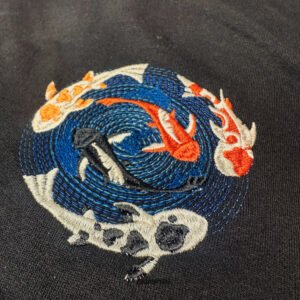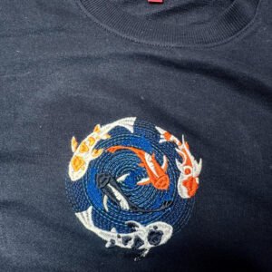 Oversized unisex 240 GSM drop-shoulder tee in 100% premium biowash terry cotton, embroidered with a 4-inch Koi Fish symbolizing strength, perseverance & good fortune (Left Chest | Center) in 6 colors – Lavender, Off White, White, Green, Rose Pink & Black.