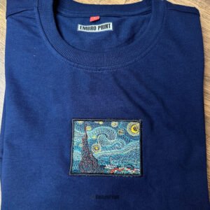 Featuring finely embroidered camping gear — lamp, fire, cup, and chair — this tee captures the spirit of the outdoors, perfect for those who carry campfire vibes wherever they go.